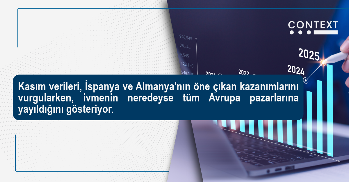 Bu yükseliş sadece en büyük ekonomilerle sınırlı değil: Avrupa'daki hemen hemen her büyük ve ikincil pazar olumlu bir trend gösteriyor. Portekiz ve Avusturya'dan İsveç, Norveç ve Baltık ülkelerine kadar, Kasım ayı verileri, ivmenin bir veya iki odak noktasında yoğunlaşmak yerine bölge geneline yayıldığını gösteriyor.